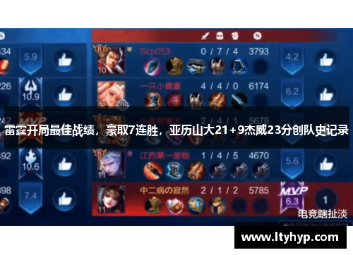 文章摘要:雷霆本赛季开局取得了空前的7连胜,亚历山大和杰威在其中表现突出,前者21+9,后者更是砍下了23分,创下了队史纪录。本文将从四个方面对此次壮举进行详细阐述:首先是球队整体实力的提升,其次是主要球员的表现突出,接着是团队配合的默契和实力对比,最后是对球队未来发展的展望。通过本文的分析,读者可以更好地了解雷霆取得这一成绩的原因以及背后的故事。